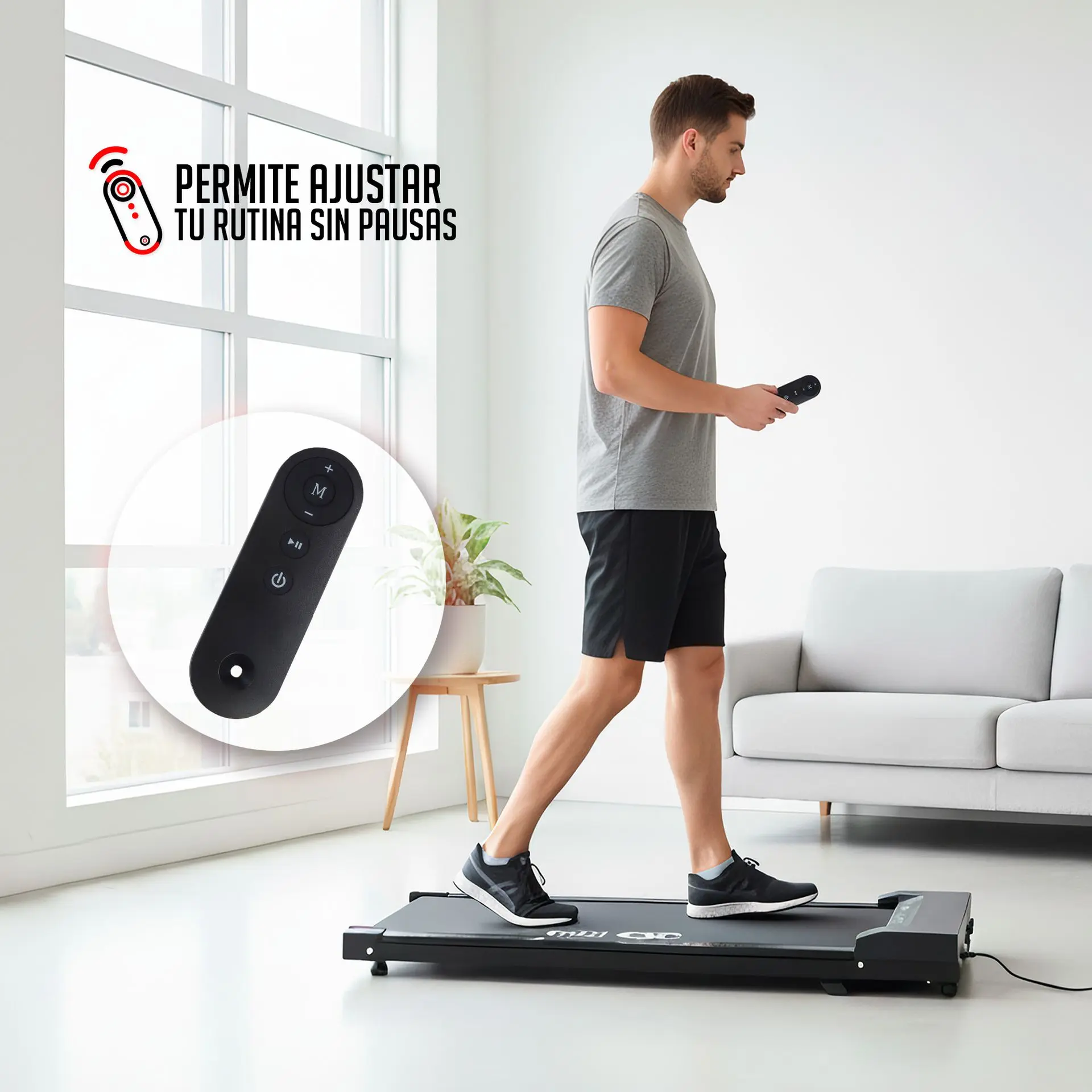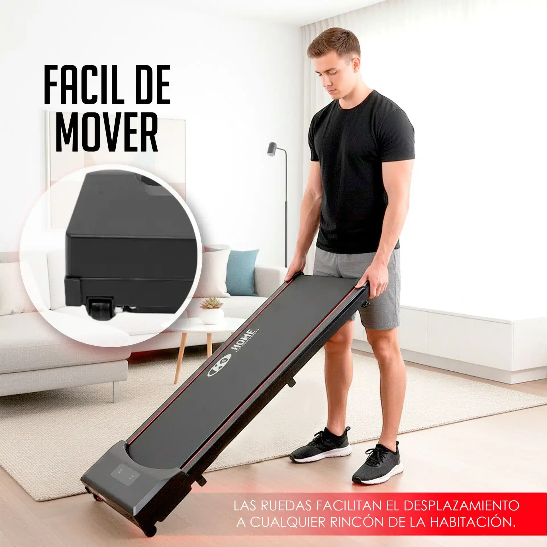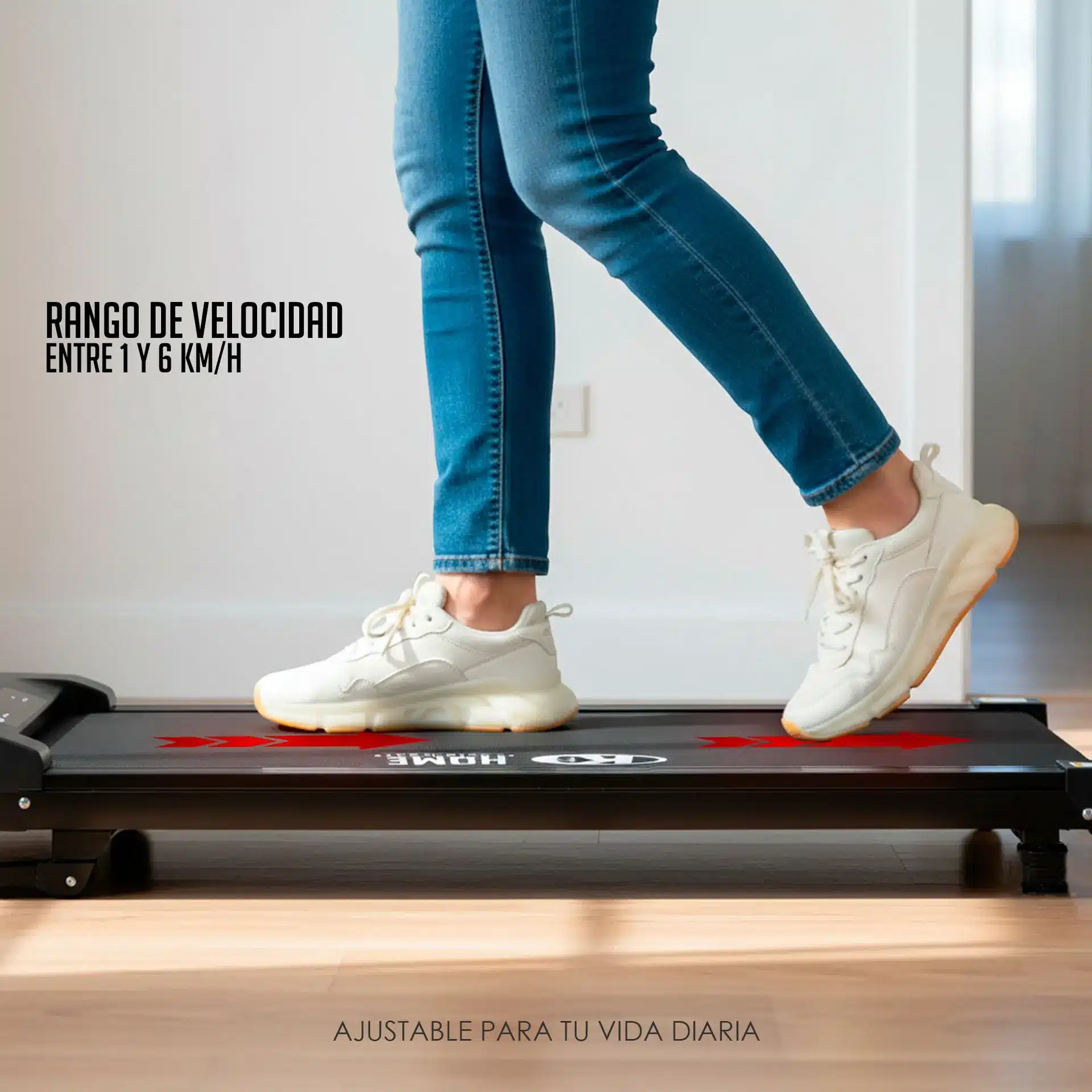 Descubre la forma más inteligente y conveniente de mantenerte activo con la Caminadora Eléctrica K6 HOME EQUIPMENT. Perfecta para el estilo de vida moderno, su diseño ultracompacto y minimalista, conocido como Walking Pad, te permite realizar caminatas suaves o trotes ligeros sin sacrificar espacio. Es la solución ideal para integrar el ejercicio a tu rutina diaria, ya sea debajo de tu escritorio de pie, frente a la televisión o guardada discretamente bajo el sofá.