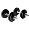 – Están elaboradas de hierro fundido de 20Kg cada una, cubiertas con una capa protectora de esmalte horneado anticorrosiva. Este set incluye dos barras de 1” (rosca americana), con mango moleteado antiresbalante que te darán agarre máximo en todo momento.